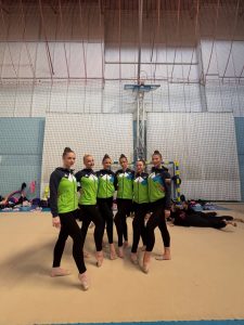 Urša tekmovaje v kombinaciji sestavi 3 + 2 (trije obroči in dva para kijev), skupaj še z ostalimi reprezentačnimi kolegicami Tiana, Tia, Kaja, Mia.