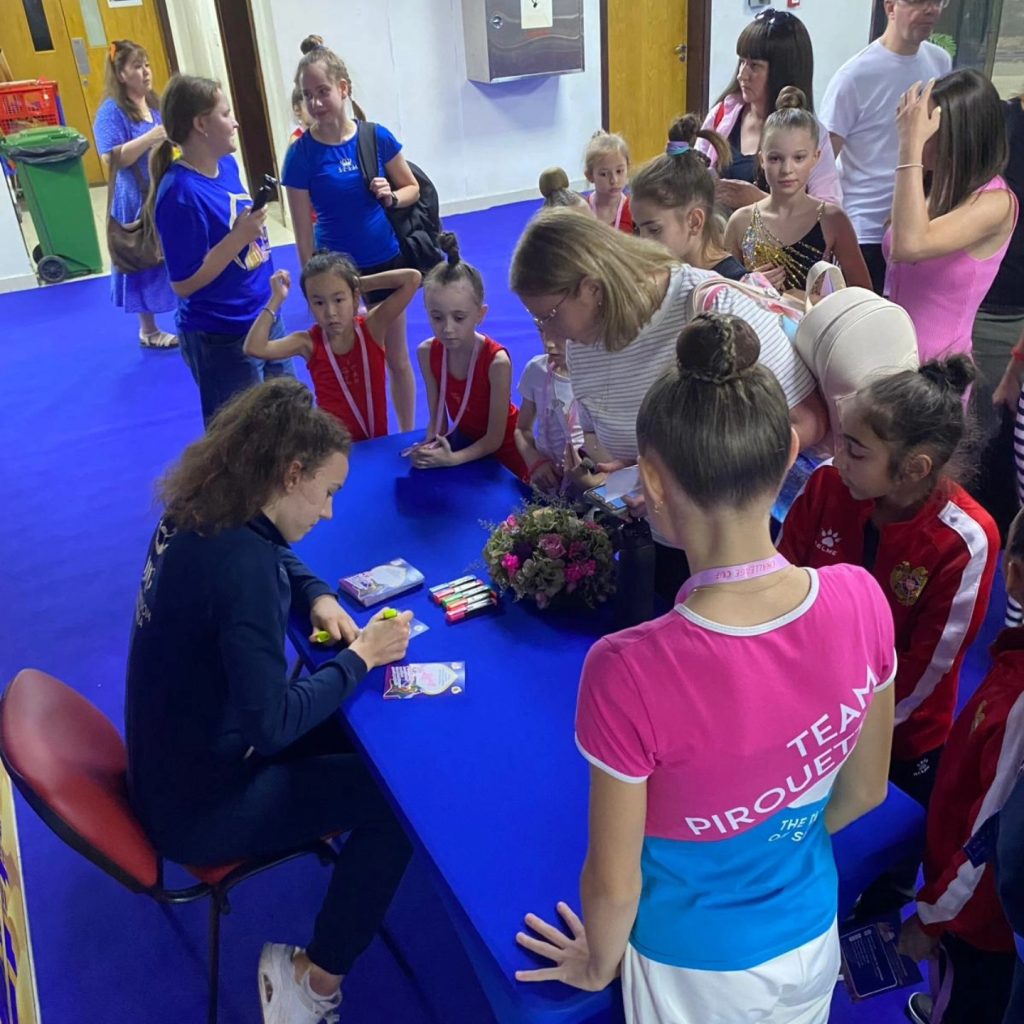 Dekleta so se v telovadnici tudi slikale z Lauro Traets, dobitnico zlata v skupinskih sestavah na Olimpijskih igrah v Tokiu 2021
